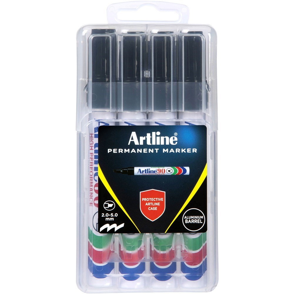 Artline 90 Permanent Markers Chisel 2-5mm Black Hard Case Pack Of 4