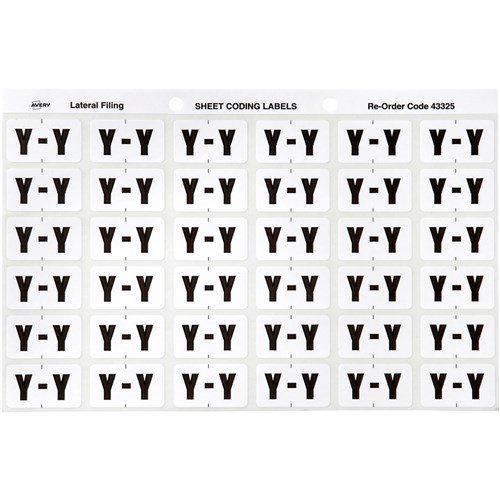 Avery Alphabet Coding Label Y Side Tab 25x38mm White Grey Pack Of 180