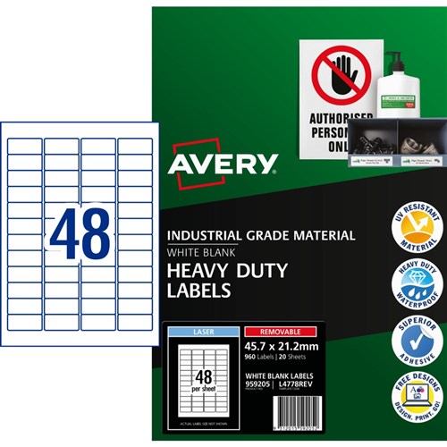 Avery Identification Removable Heavy Duty Laser White L4778 45.7x21.2mm 48UP 960 Labels