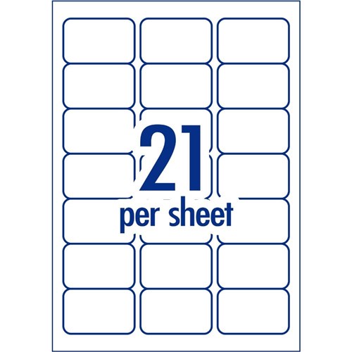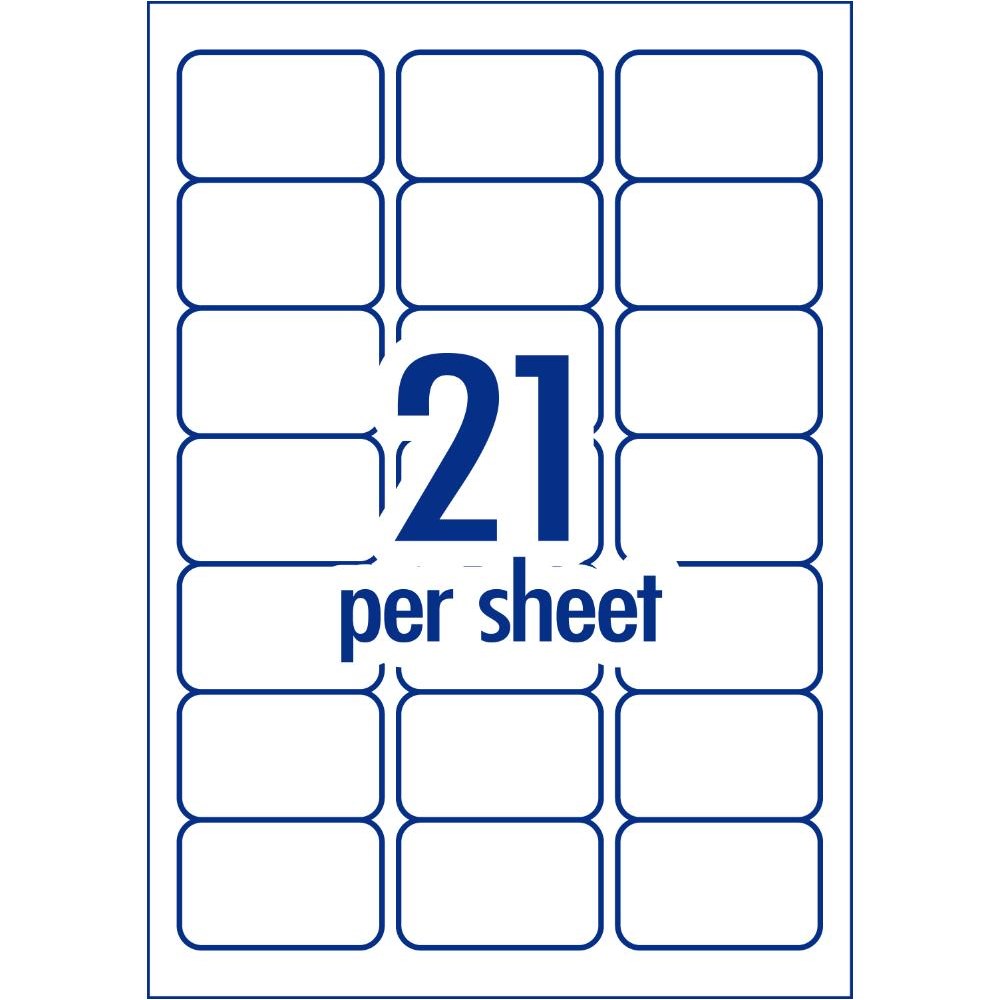 • Size: 63.5 x 38.1mm, 2100 labels, 100 sheets. 21 labels per sheet (21UP).
