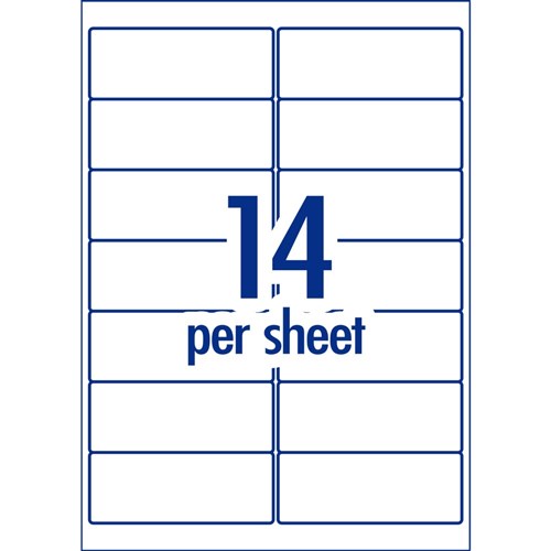 • Size: 99.1 x 38.1mm, 1400 labels, 100 sheets. 14 labels per sheet (14UP).