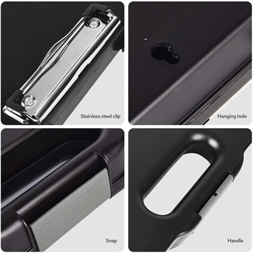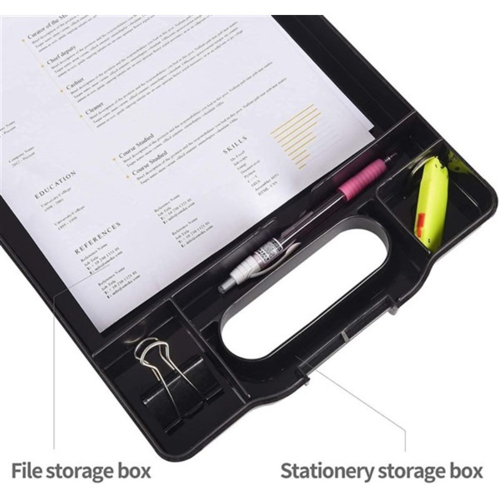 • Professional clipboard storage. Keeps documents secure and accessible on the go.
