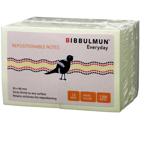 Bibbulmun Sticky Notes 36 x 48mm Yellow 100 Sheets Pad Pack of 12