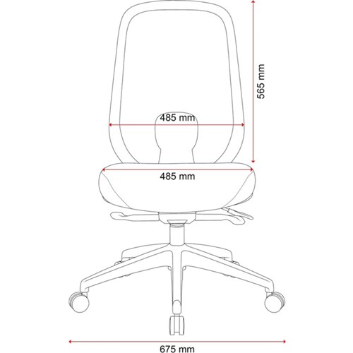 • Seat Dimensions: 485W x 455D x 535mmH. Back Height: 565mm. Back Width: 485mm.