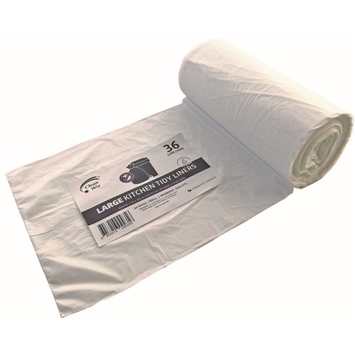 Clean Wiz Oxo-Biodegradable Kitchen Tidy Liners 36 Litres White Roll Of 50