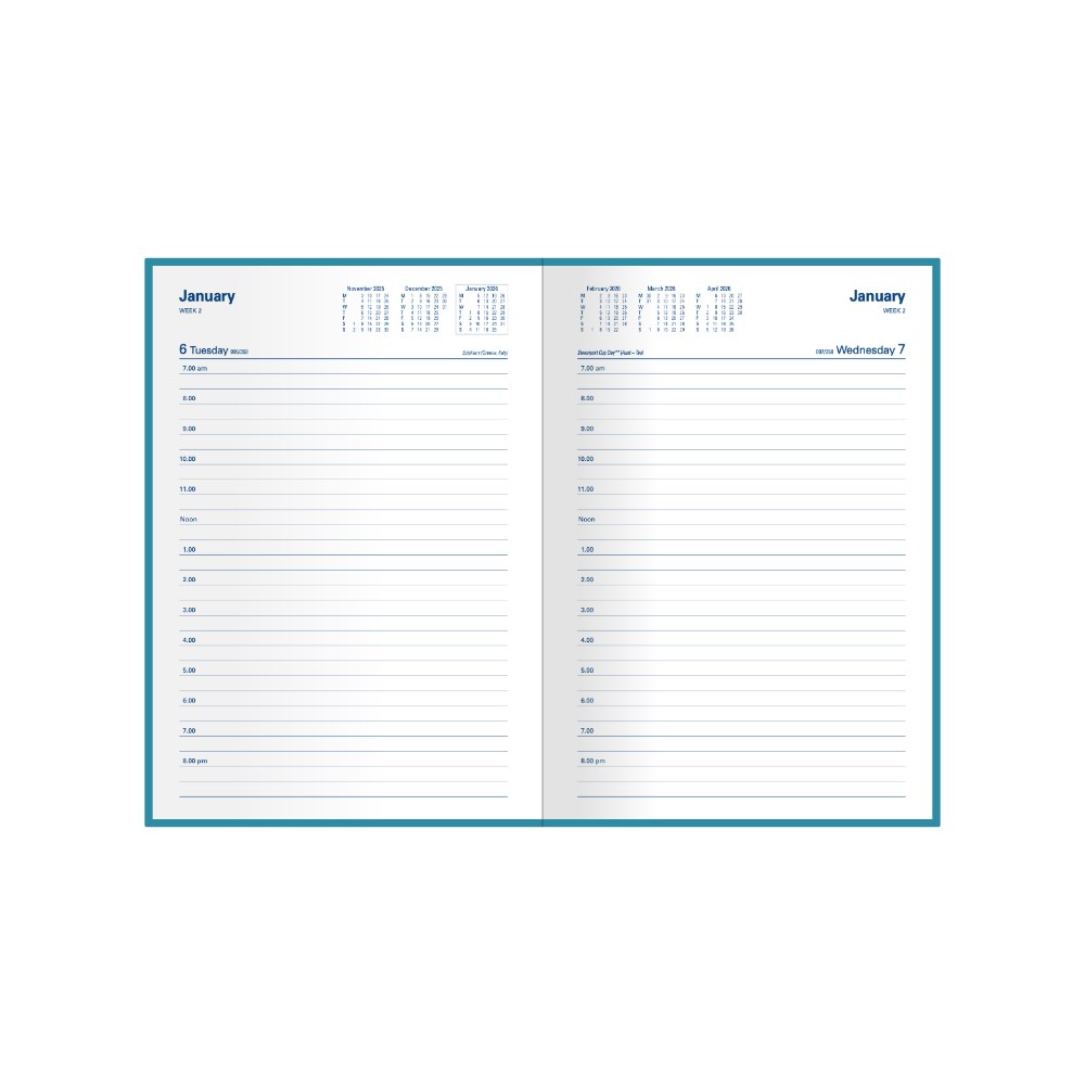 • Bound in durable PVC with soft flexible cover. Printed on white paper, week numbers, Julian days, Australian and New Zealand holidays.