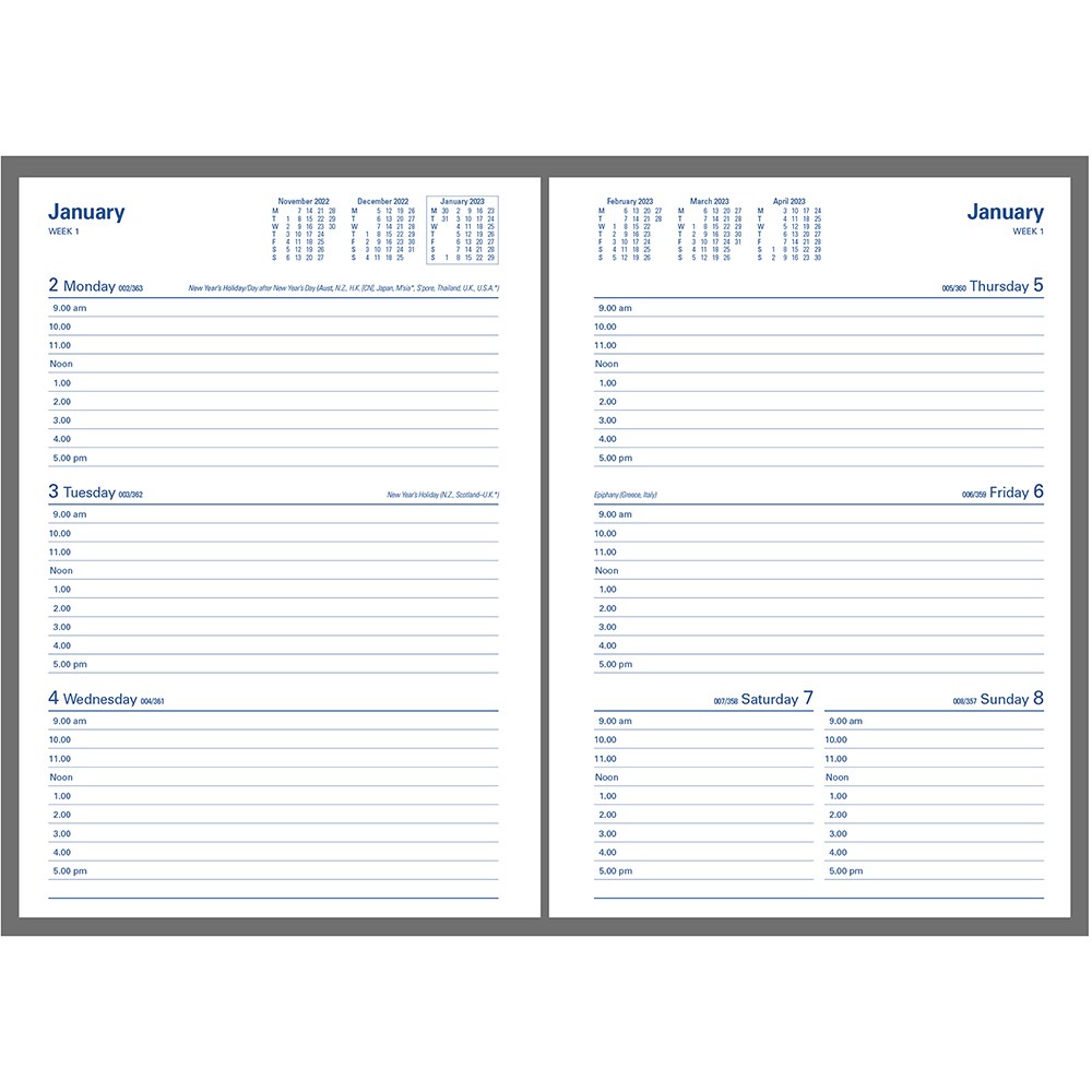 • Hardwearing, linen-look cover. Extensive range of internal features, including notes, planners and essential information.