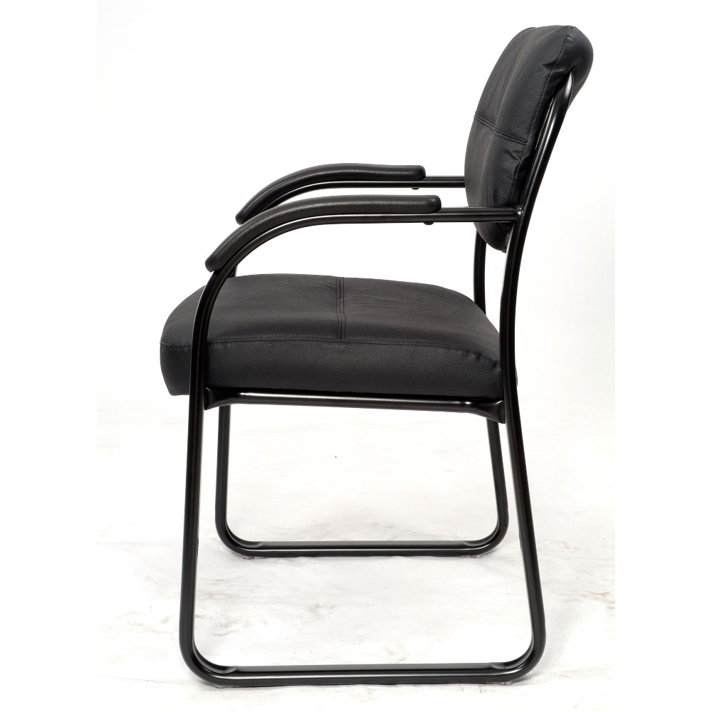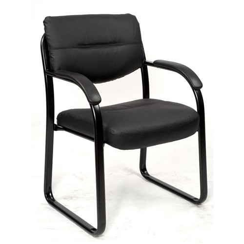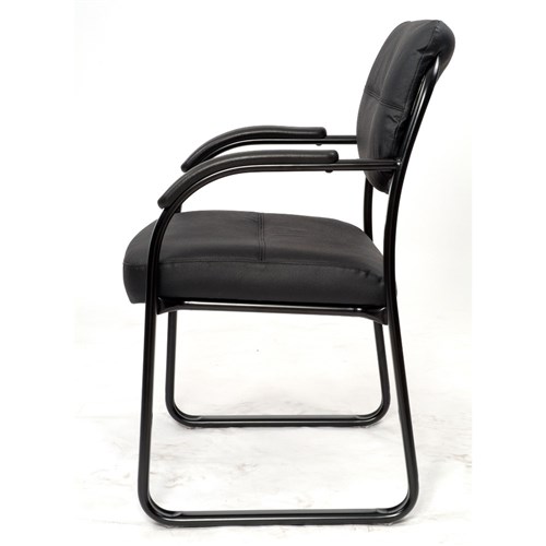 Corkman Visitor Chair Black Steel Frame Padded Arm Rests Black PU Seat And Back