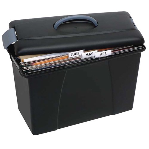 • Stylish case, ideal for storing and transporting files safely and securely, with rails to support foolscap suspension files.