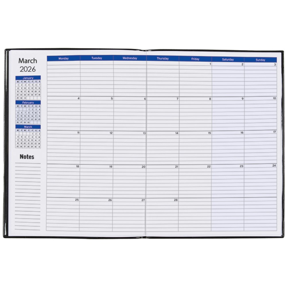 • Casebound diary with current year embossed in PVC cover and all-round border stitching.