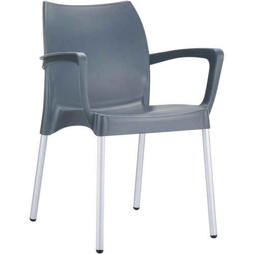 Dolce Hospitality Dining Chair With Arms Indoor Outdoor Use Stackable Poly Anthracite
