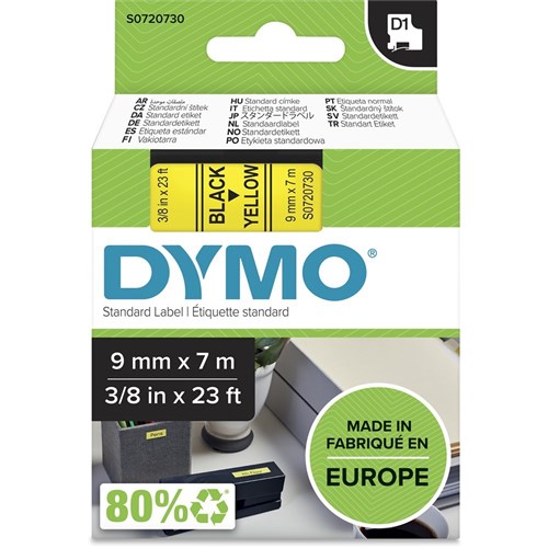 Dymo D1 Label Cassette Tape 9mmx7m Black on Yellow
