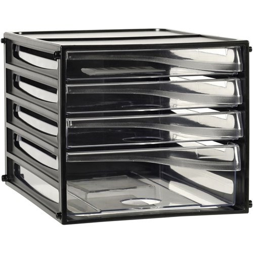 Esselte Desktop Filing Drawers 4 Clear Drawers Black Shell
