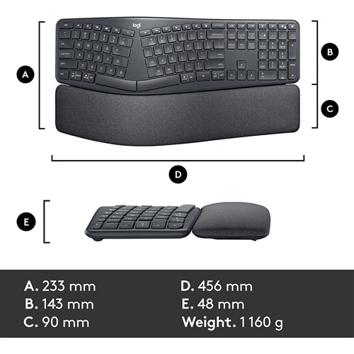 Logitech Ergo K860 Wireless Split Keyboard Graphite