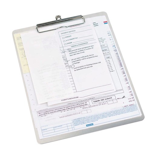 • Chrome plated lever clip snaps into place securing your paperwork.