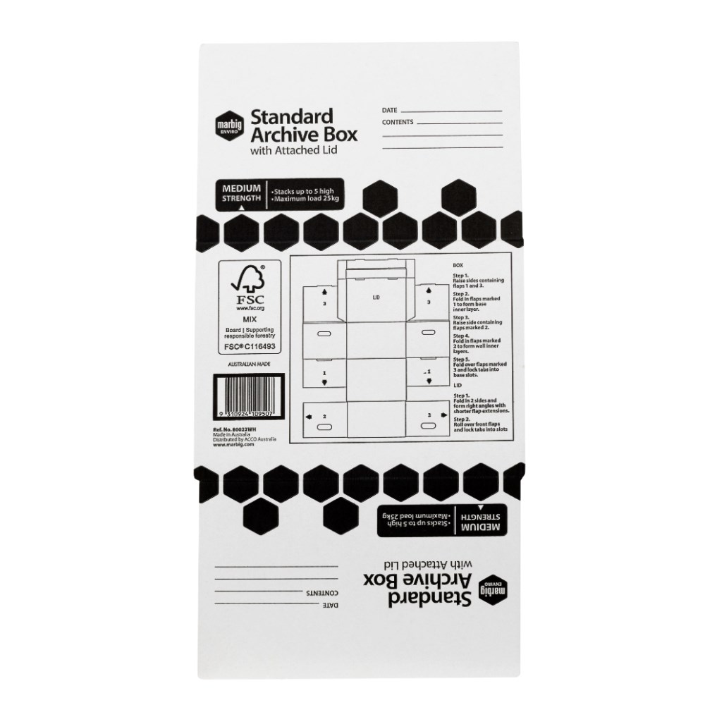 Marbig Enviro Standard Archive Box Hinged Lid 315W x 420D x 260mmH White