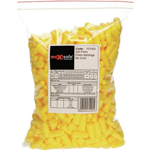 Maxisafe MaxiPlug Ear Plugs Disposable Uncorded 26dB Yellow Pack Of 300 Pairs