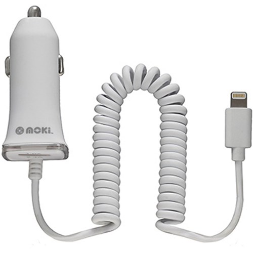 Moki Fixed Lightning Charger + USB Port White