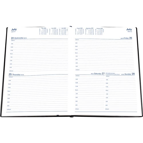 • Stylish hardcover casebound diary with blue leather grain cover.