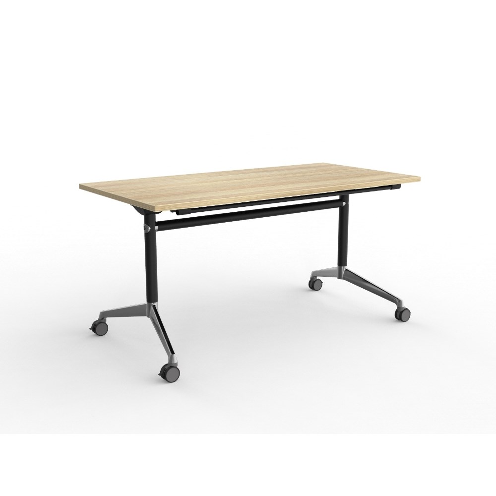 OLG Modulus Flip Table 1500W x 750D x 720mmH Black Frame Chrome Feet New Oak Top