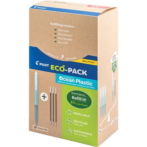 Pilot Eco Pack Super Grip G Retractable Ballpoint Ocean Plastic Pen+Refill 0.7mm Black