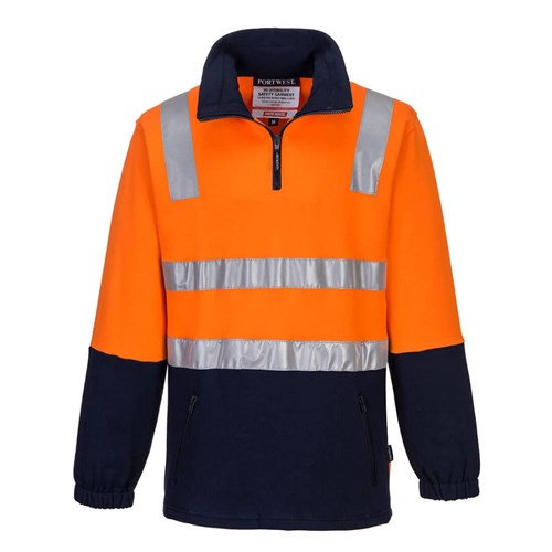 Portwest Hi-Vis Contrast 1/4 Zip Brush Fleece Jumper With Tape Large Orange And Navy