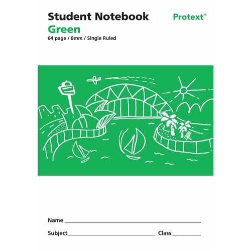 Protext Student Note Book 250 x 175mm Single Ruled 8mm 64 Page Green