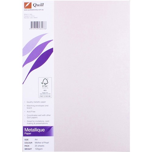 Quill Metallique Paper A4 120gsm Mother of Pearl Pack of 25