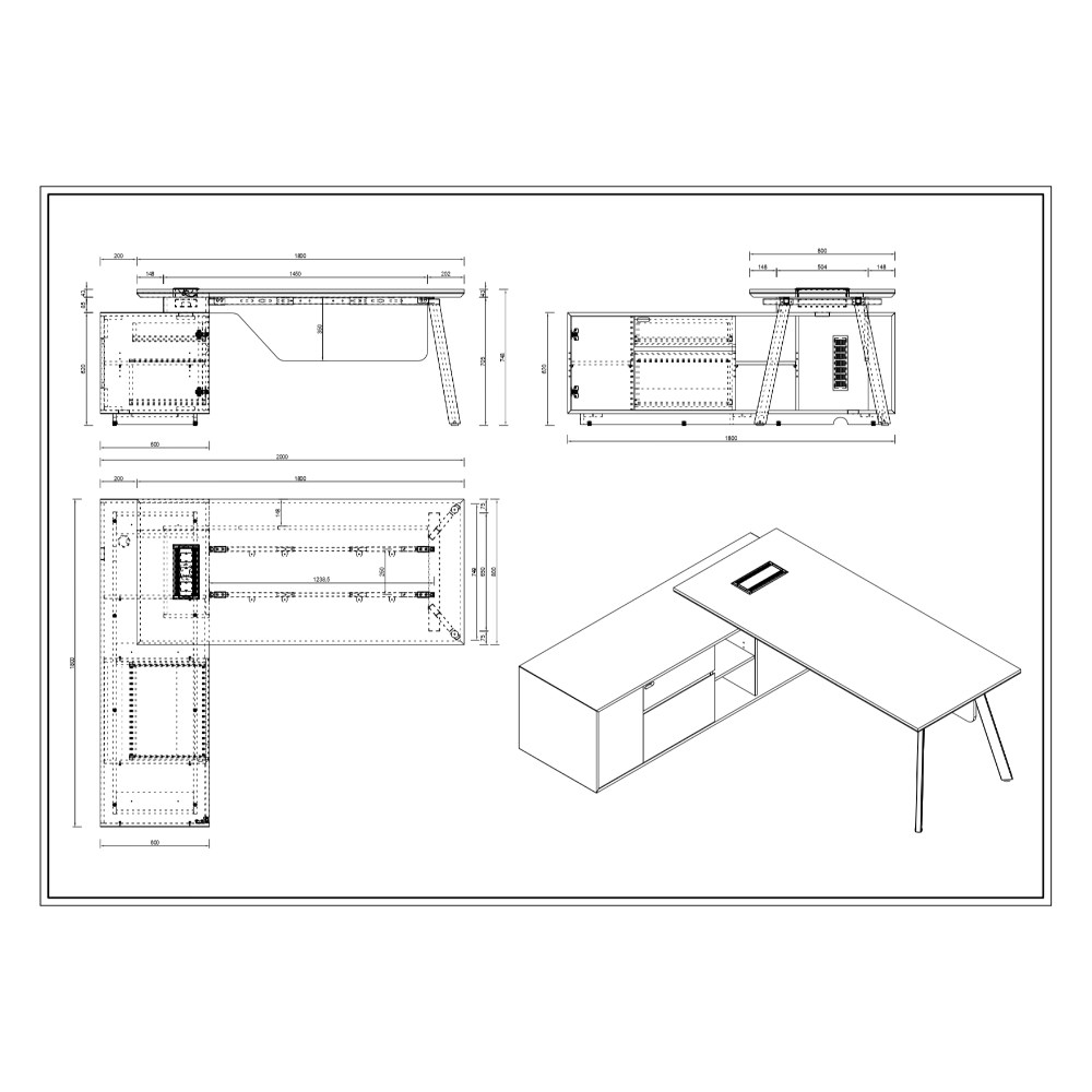 • Desk Dimensions: 1800W x 800D x 748mmH.