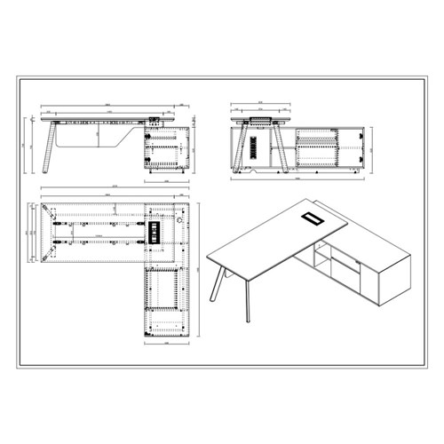 • Table Top Thickness: 43mm. Shark nose edge profile and integrated in desk cable tidy box with brush trip dualway lid.