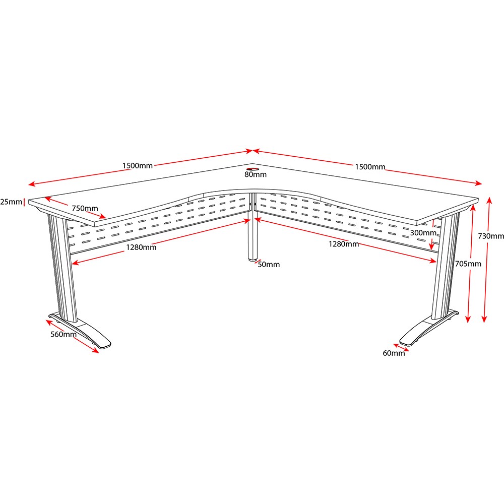 Rapidline Deluxe Rapid Span Corner Workstation 1500/1500W x 750D x 730mmH Oak/White