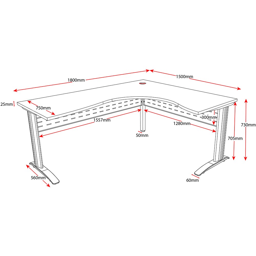 Rapidline Deluxe Rapid Span Corner Workstation 1800/1500W x 750D x 730mmH Oak/Silver