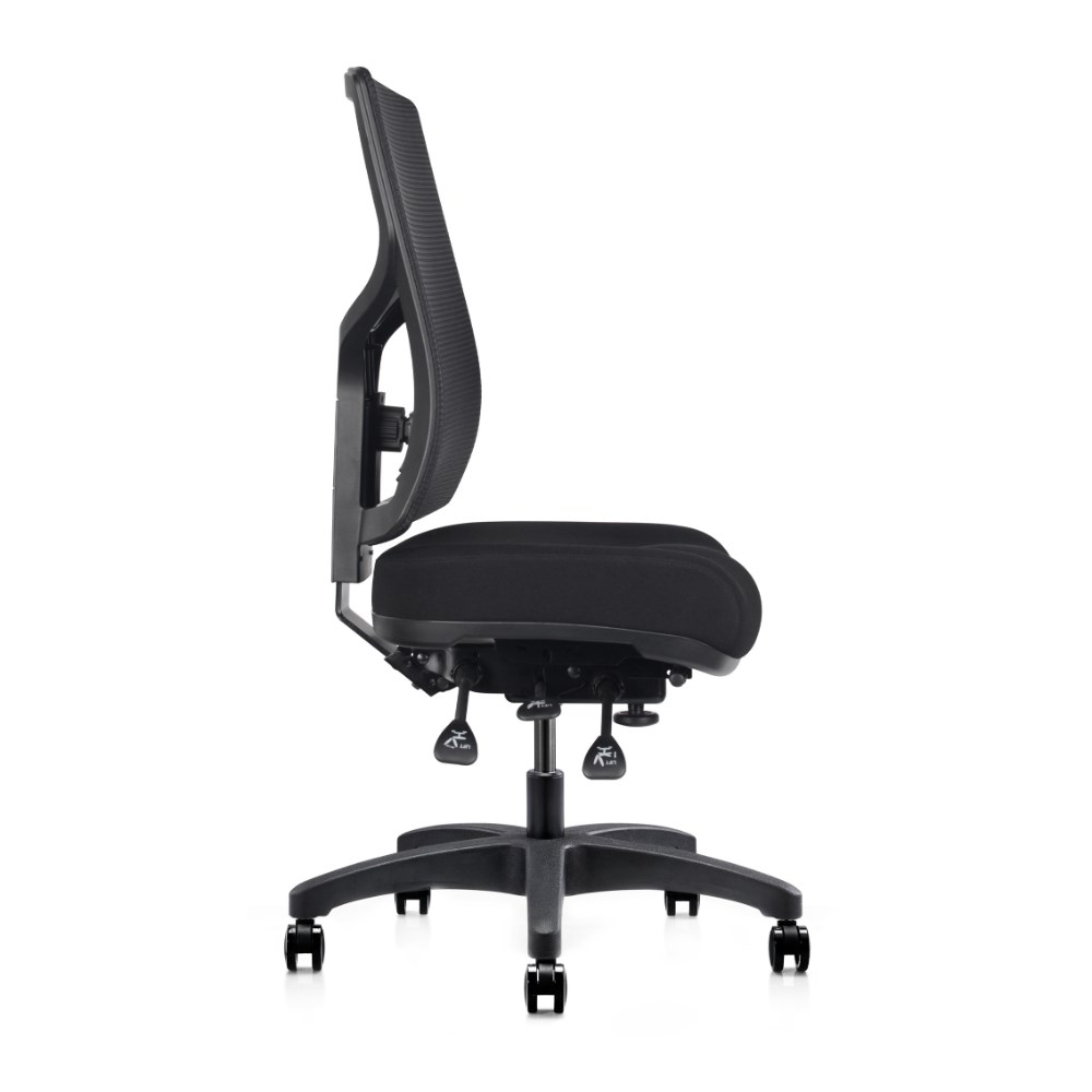 • Featuring a heavy-duty mechanism with seat slide, height-adjustable lumbar support.