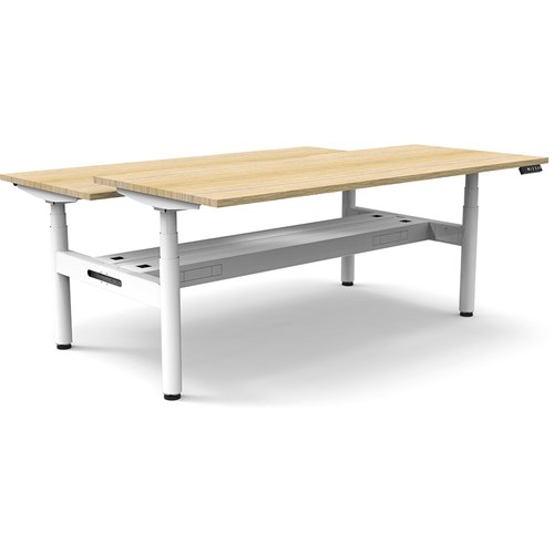 Rapidline Halo+ Back to Back Workstation + Cable Tray 2 Person 1500mmW Oak/White
