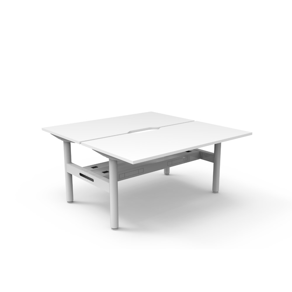 • Natural White top White Satin frame. Double sided workstation with cable tray.