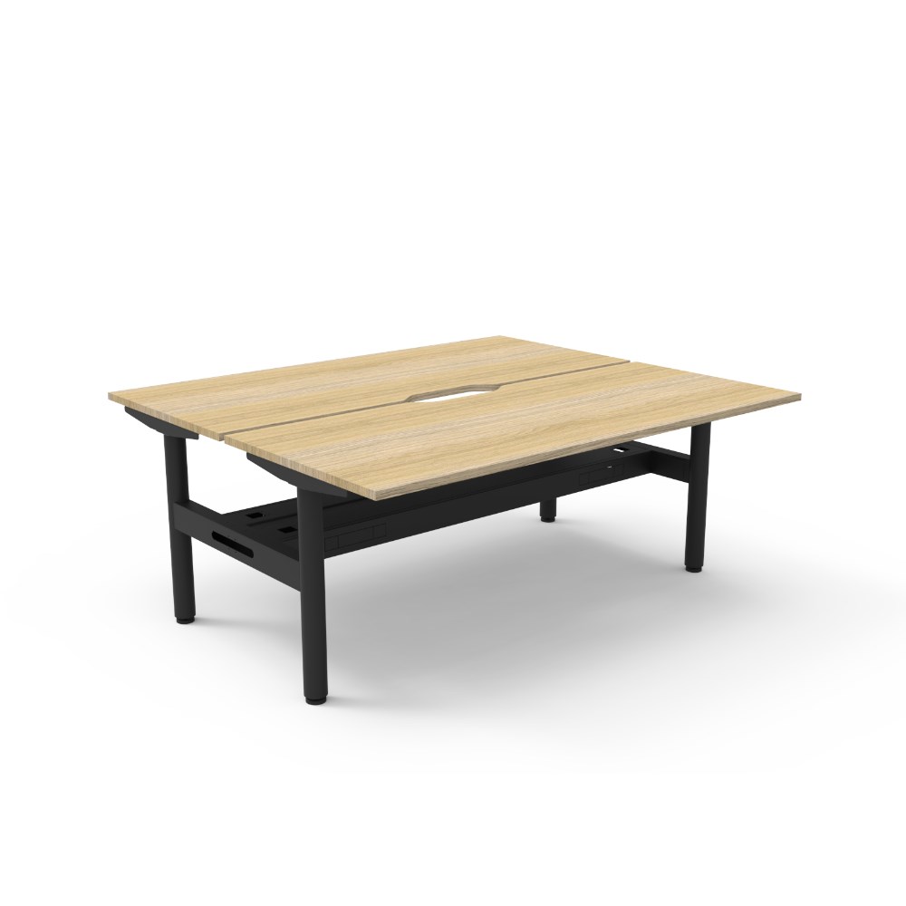 Rapidline Halo Static Back To Back Workstation + Cable Tray 2 Person 1800Wx730mmH Oak/Blk