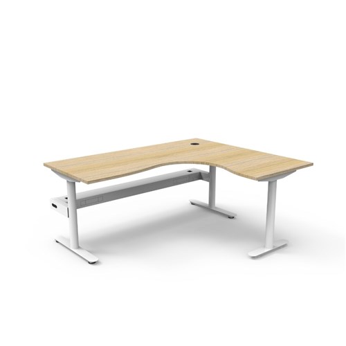 Rapidline Halo Static Corner Workstation + Tray 1800/1500W x 750D x 730mmH Oak/White