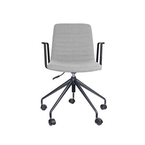 Rapidline Pixel Breakout Room Chair With Arms Black Legs Light Grey Fabric Seat