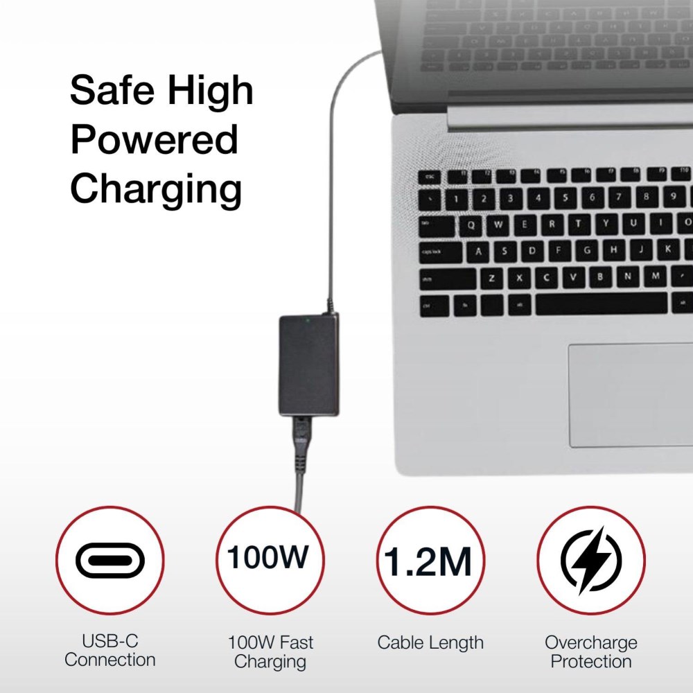• Up to 100W fast-charging power for 2 devices. USB-C Power Delivery 3.0 port & USB Type-A fast-charging port (max 2.4A).