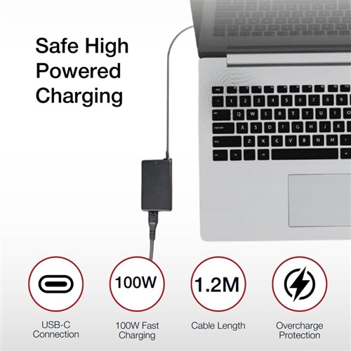 • Balances output when charging 2 devices at once. Provides up to 100W via the USB-C cable and up to 12W for the USB Type-A port when charging 2 devices at once.