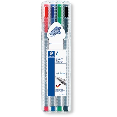 Staedtler 334 Triplus Fineliners 0.3mm Assorted Wallet of 4