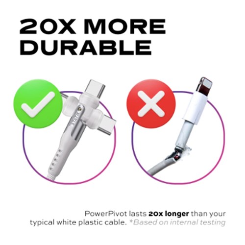 • Long rubber cable transition lasts up to 20 x longer than typical plastic cables.