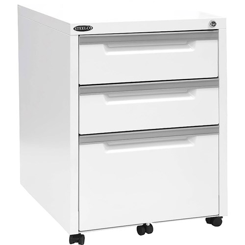 • Steelco Classic Mobile Pedestal 2 Drawer 1 File 470W x515Dx630mmH White Satin
