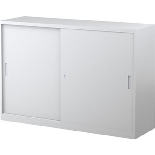 Steelco Sliding Door Cabinet 2 Shelves 1500W x 465D x 1015mmH Silver Grey