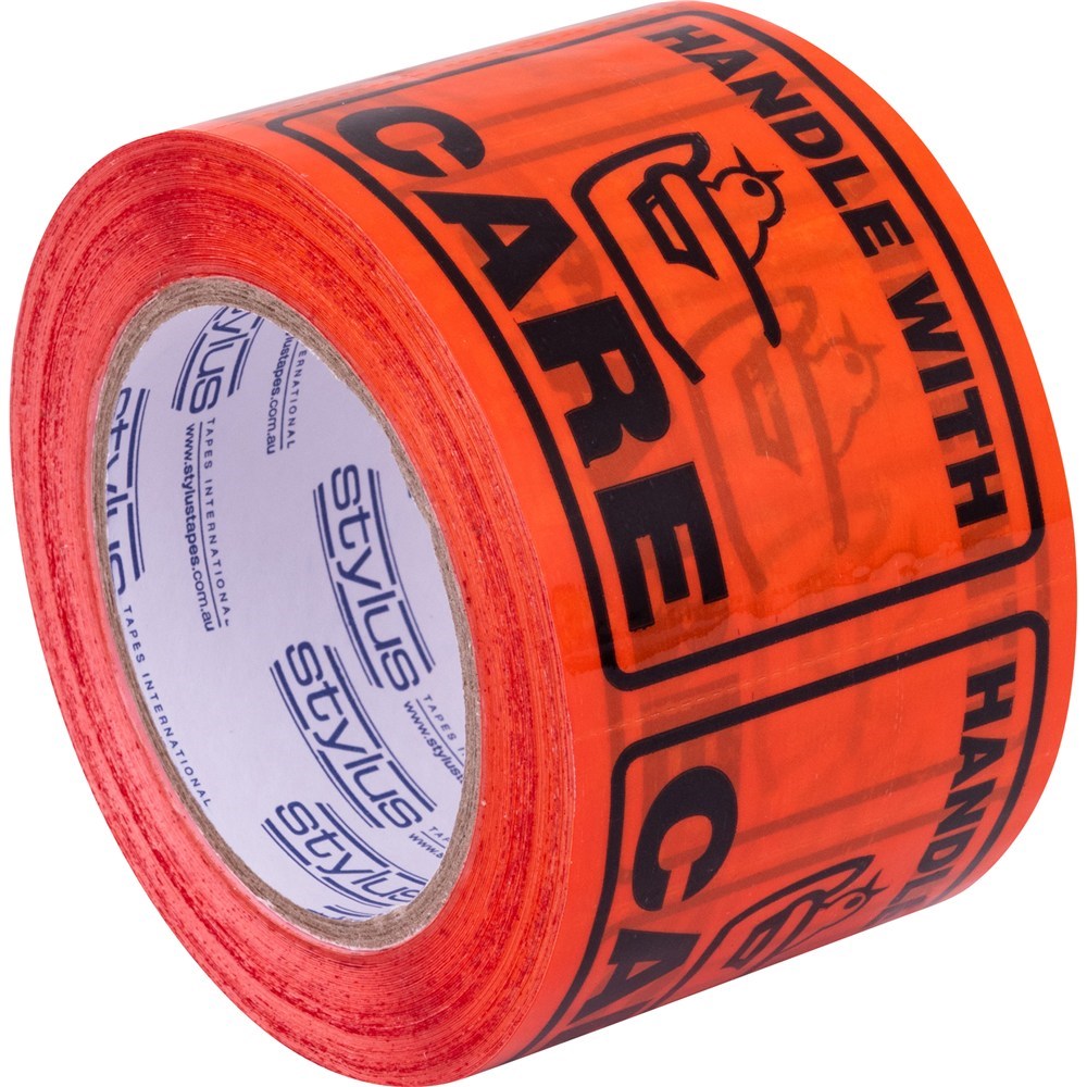 Stylus Label Tape 75x100mm Handle With Care Black on Orange 500 Labels