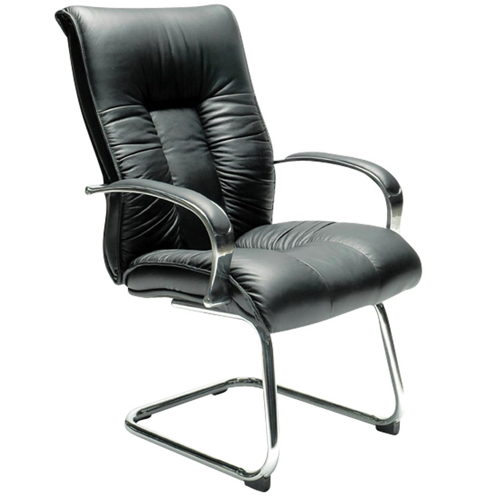 Sylex Big Boy Cantilever Visitor Chair Medium Back With Arms Black Leather