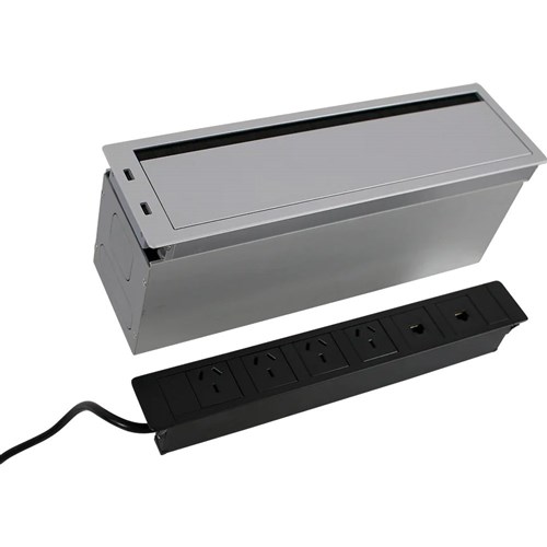 Sylex In Desk Power Box 4 GPO 2 USB 2 Data Silver