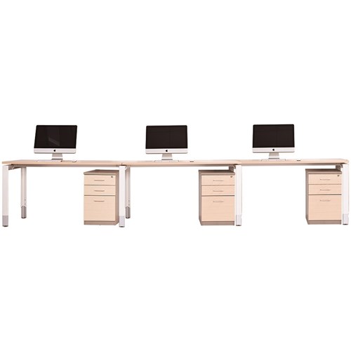 Sylex Oblique Straight Desk 3 Person 3600W x 750D x 620-920mmH Snow Maple/White