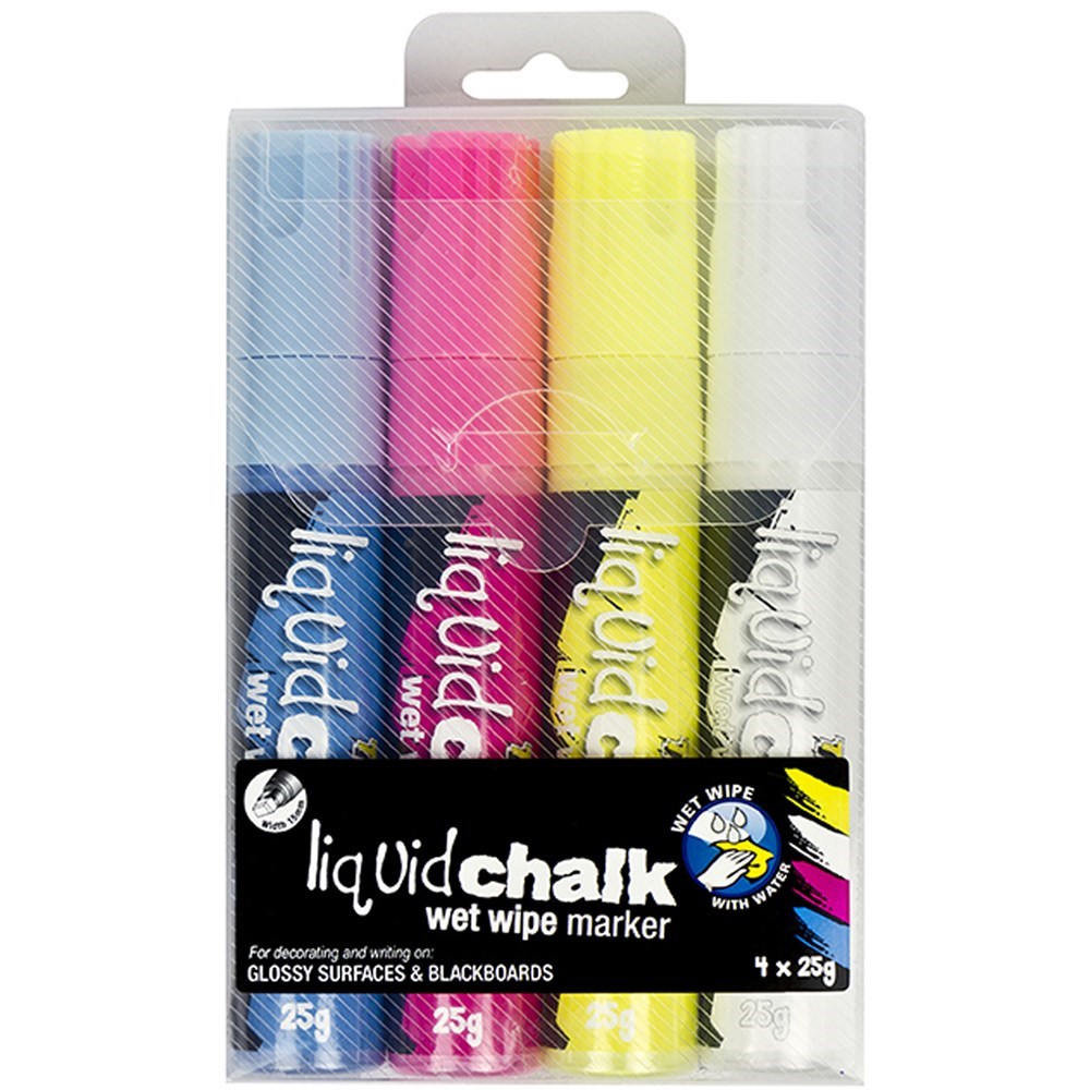 Texta Jumbo Liquid Chalk Markers Wet Wipe Chisel 15mm Assorted Wallet Of 4