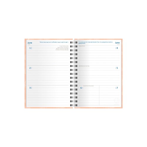 • Features a week to view layout and double wire binding so you can easily open and close it while on the go.